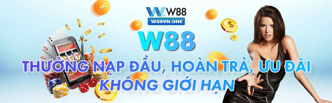 - Thưởng 100% nạp đầu tiên: Bắt đầu cuộc hành trình cá cược của bạn với một lợi thế lớn, nhận ngay 100% tiền thưởng khi nạp tiền lần đầu vào tài khoản W88. Bạn có cơ hội nhận tối đa 6.150.000 VNĐ.